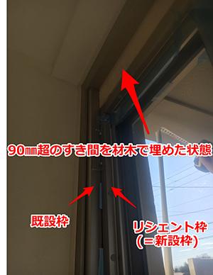 数㎜のすき間なら問題はないのですが、90㎜超のすき間となると、とても枠を固定することができません。