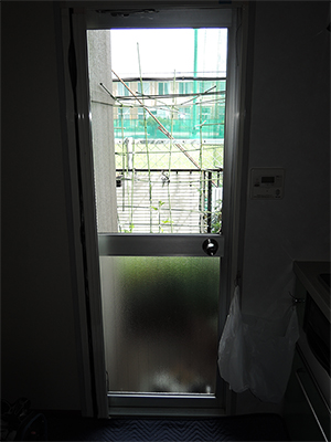 本日は、西宮市にあるO様宅へリシェント勝手口と浴室ドアの設置に行っておりました。