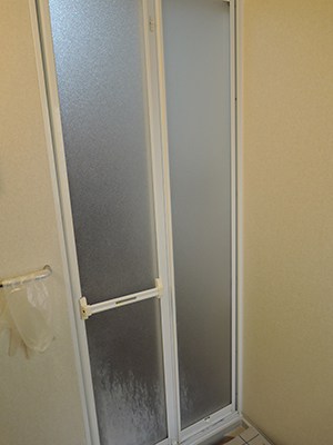 本日のK様も浴室中折れドアの破損を機に浴室片開きドアへの交換となりました。