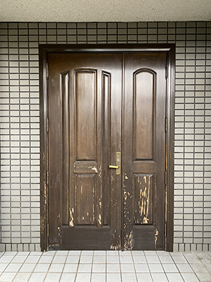 木製ドアは断熱性は高いのですが、外部環境、メンテナンス(専門業者による再塗装など)や各自のお手入れ等の頻度によっては、表面に傷みが出ます。