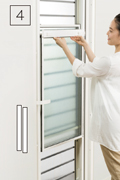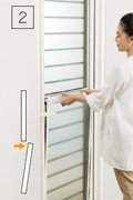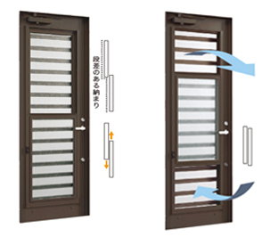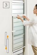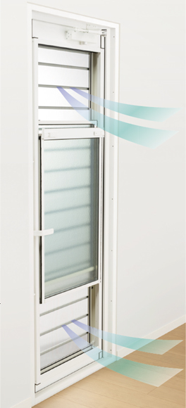 簡単な操作で上げ下げできるダブルハング窓を内蔵しています。扉を閉めたまま採風できるので、安全性を確保しながら、スムーズに空気の入れ替えをすることができます。