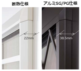 断熱仕様はフラットスライド構造により、室外側の格子の出寸法が小さく、すっきりしたデザインを実現しています。